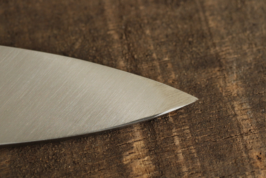 This is an especially sharp and high class hardness Japanese knife blade, using core blade blue-2 steel from Yasuki hagane, which is reputed to be the top grade of steel for knives.  This knife was forged by Tansetsu traditional way. It is recommended for Professional Chefs.