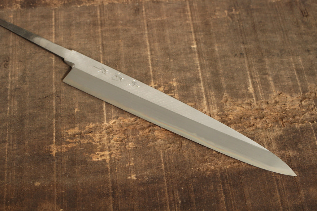outlet BC ibuki tanzo Sasaoka blank blade forged blue #2 steel Yanagiba Sashimi knife 240mm Kasumi Hamon